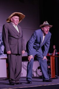 Vor einem, wie der Autor vorgibt, kahlem Baum, warten Estragon und Wladimir auf einen Herrn Godot. Dabei vertreiben sie sich die Zeit, zuweilen kommen ihnen Zweifelüberhaupt am richtigen Ort zu warten. Wladimir muss immer wieder seinen Freund Estragon bei der Stange halten indem er ihm vorspiegelt, wie herrlich es bei Herrn Godot zugehen könnte. Da erscheint Pozzo, den sie anfänglich für Godot halten. In seiner Begleitung Lucky, der ihm in erniedrigender Weise dienen muss. Für eine gewisse Zeit verweilen die Beiden am ungeselligen Ort, die Pozzo, der ausschließlich diesseitigdenkende Mensch, zu seinen geblümten philosophischen Exkursen nutzt. Lucky bleibt Wladimir und Estragon ein Rätsel, über das vor allem Estragon mehr erfahren möchte. Aus Dankbarkeit für ihre Gastfreundlichkeit lässt Pozzo Lucky “denken” und seine Gedanken aussprechen, was, wie Pozzo voraussagte, zu einer unerträglichen Tirade führt, die nur mit Gewalt abgestellt werden kann.